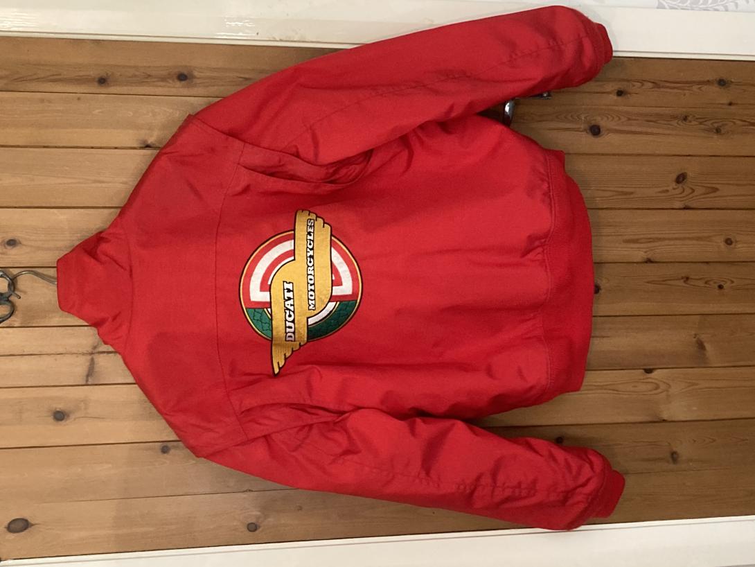 "DUCATI'S NEW RANGE OF TEAM CLOTHING....ALL TOP QUALITY ITEMS...AND BEST OF ALL THE LESIURE JACKET TO BEAT ALL LEISURE JACKETS..." "THE QUALITY IS ABSOLUTELY STUNNING"