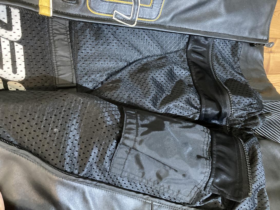 Perforated lining for coolness. Four external zip pockets, two internal. Zip main closure (plus velcro tab at top), zip cuffs.