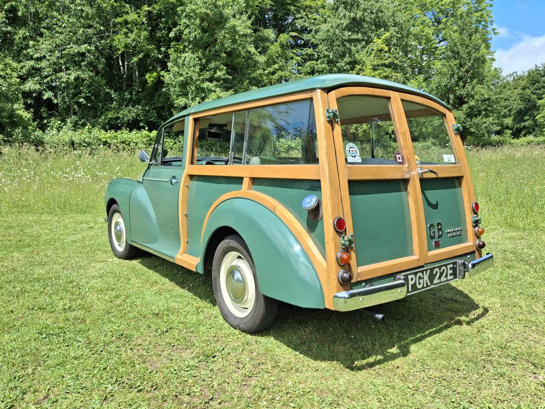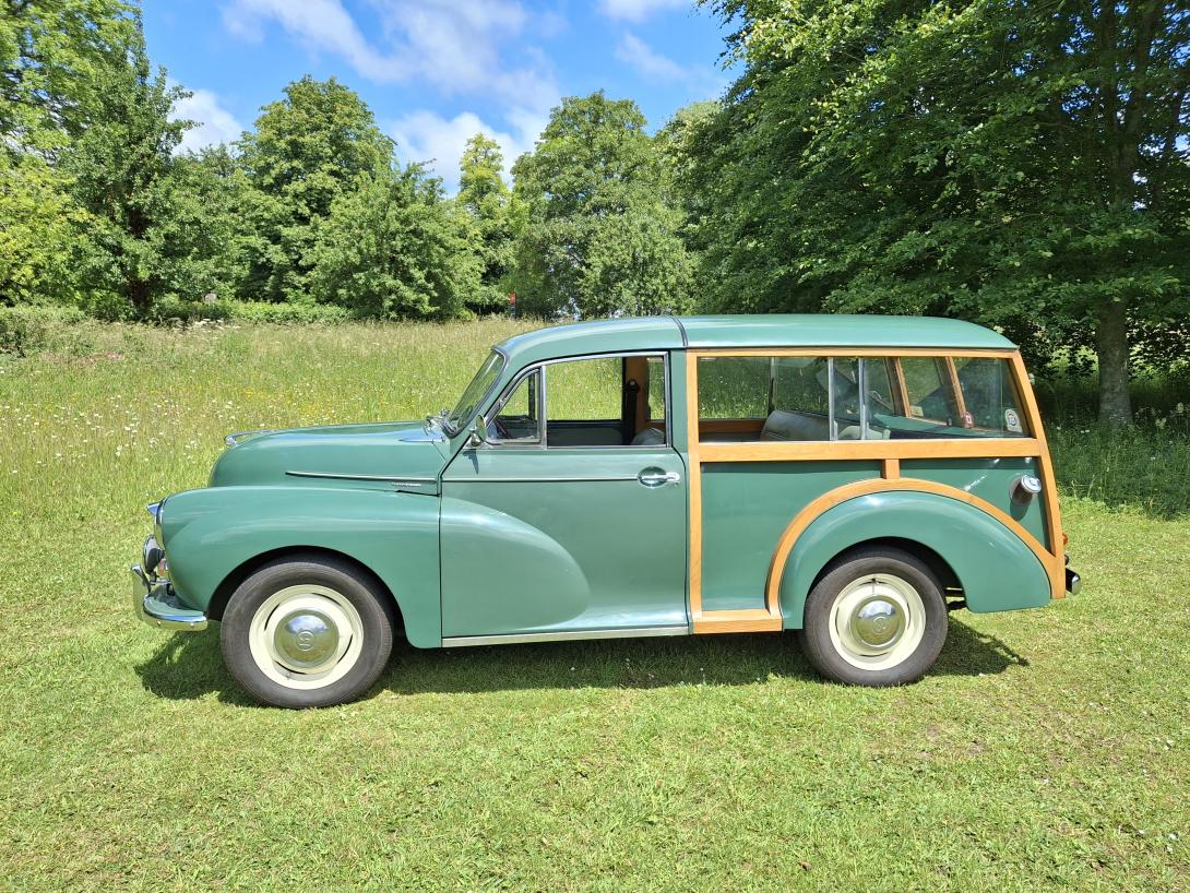 A lovely example of a 1967 Morris Minor 1098cc Traveller The car has been the subject of a restoration over a number of years and subject to a full rebuild. Work started in 2010 - 2011 by a previous owner with various types of work to include a new engine and gearbox. He then decided to have the car fully rebuilt by East Sussex Minors starting in 2015, 2016, 2018. This consisted with a full body strip, repaint and and new Ash framework. Other work carried out consists of Front brake disc conversion with Servo, Alternator, updated headlights, front seat-belts, new carpet set, Oil pressure gauge, engine temperature gauge, rear privacy cover, water pump, new front suspension, Front anti roll bar kit. Restoration costs exceed £15000 and is backed up by a full list of invoices. MOT certificates go back to 1980 and up to 2025. This truly is an exceptional Traveller and must be one of the best on the road any inspection is welcome. Genuine reason for this unexpected sale and happy to show you why. This is such a fun loving car to drive with no traumas or grief and you can just roll along and enjoy yourself. It has the most wonderful engine and gearbox so you don't have to worry about problems as it purrs around the country lanes. The only problem you will have is it will take you twice as long to get any where as every body wants to talk to you about it.