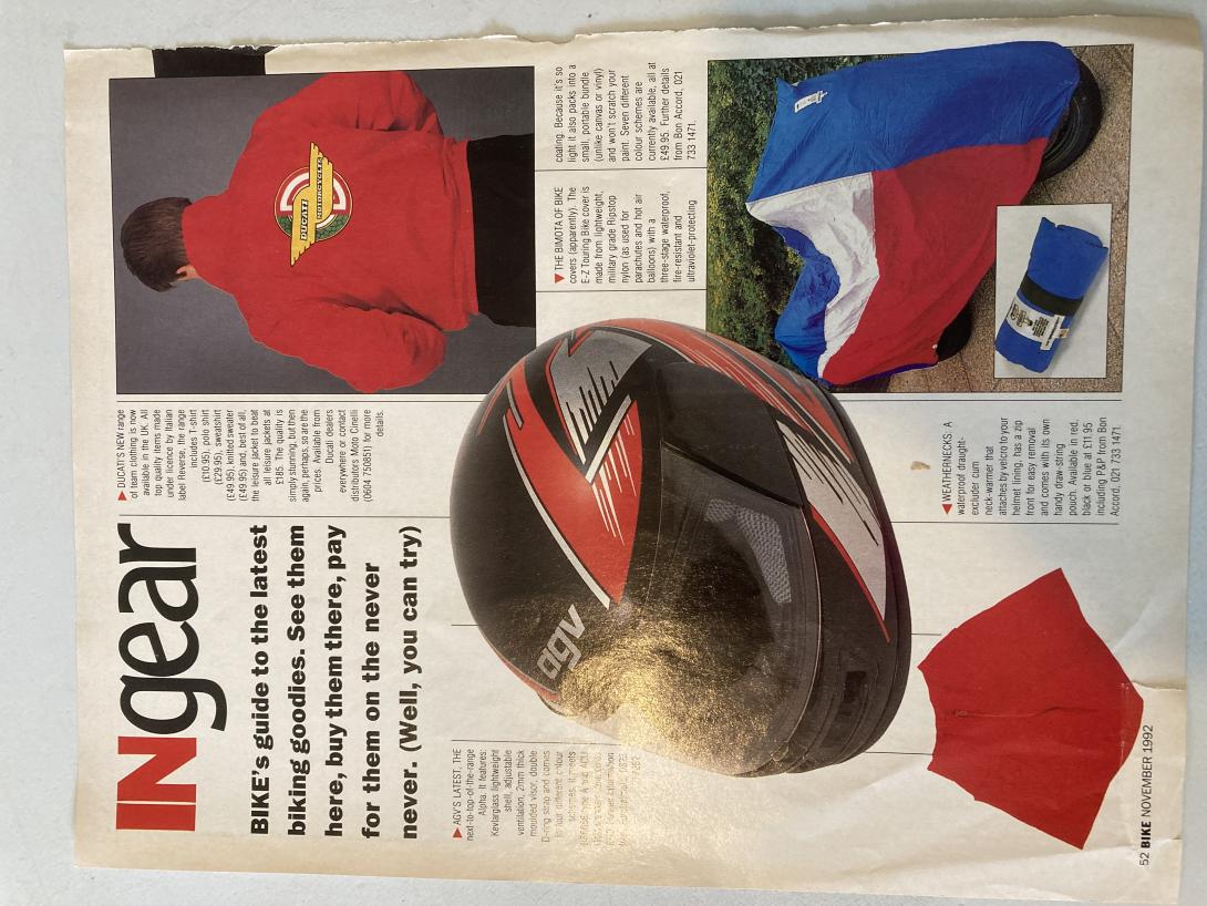 "DUCATI'S NEW RANGE OF TEAM CLOTHING....ALL TOP QUALITY ITEMS...AND BEST OF ALL THE LESIURE JACKET TO BEAT ALL LEISURE JACKETS..." "THE QUALITY IS ABSOLUTELY STUNNING"